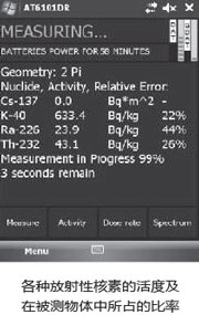 ?掌上電腦(平板電腦)內置的能譜處理軟件可以顯示放射性同位素的構成以及各種放射性元素的濃度及活度