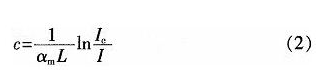 式中:αm為摩爾分子吸收系數;c為待測氣體濃度;L為光和氣體的作用長度(傳感長度)。對式(1)進行變換,得: